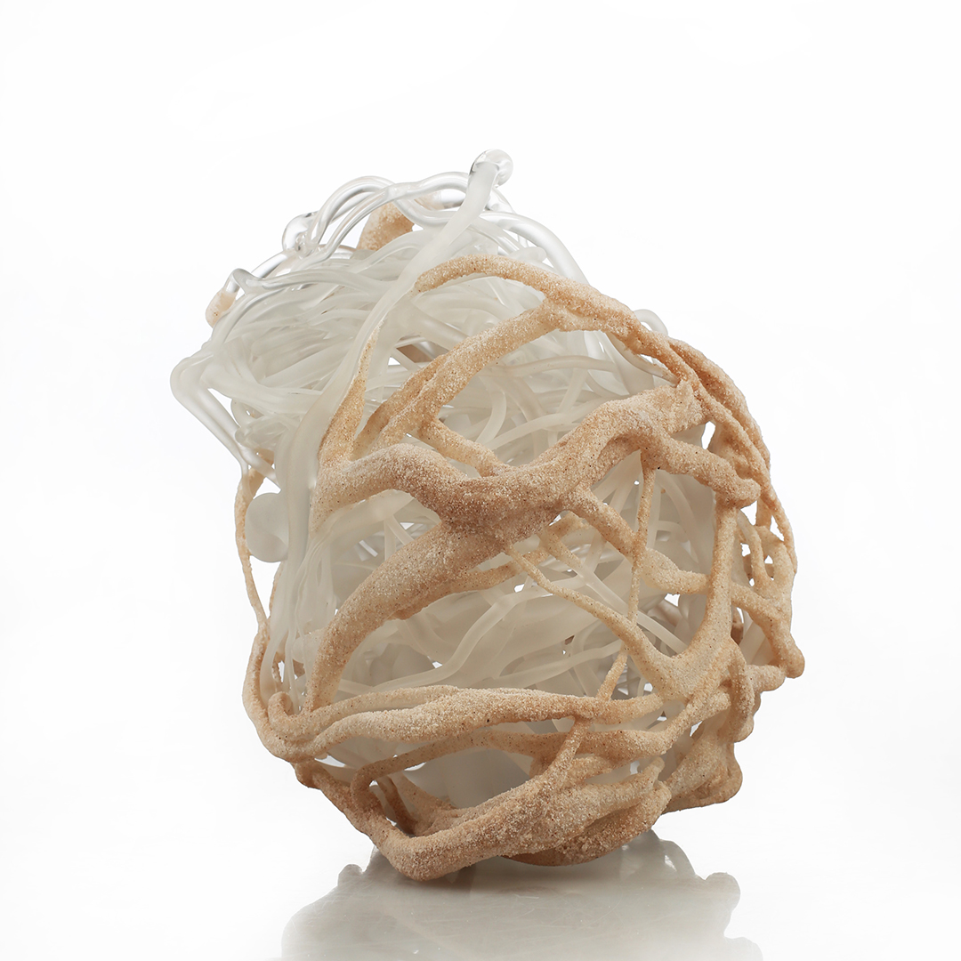 Rzeźby ze szkła i piasku tworzą opowieść o życiu, rozwoju, śmierci- o cyklu, który jest nieodłącznie wpisany w naszą egzystencję. Materia, z której powstają, jest jednocześnie krucha i trwale obecna w naturze.